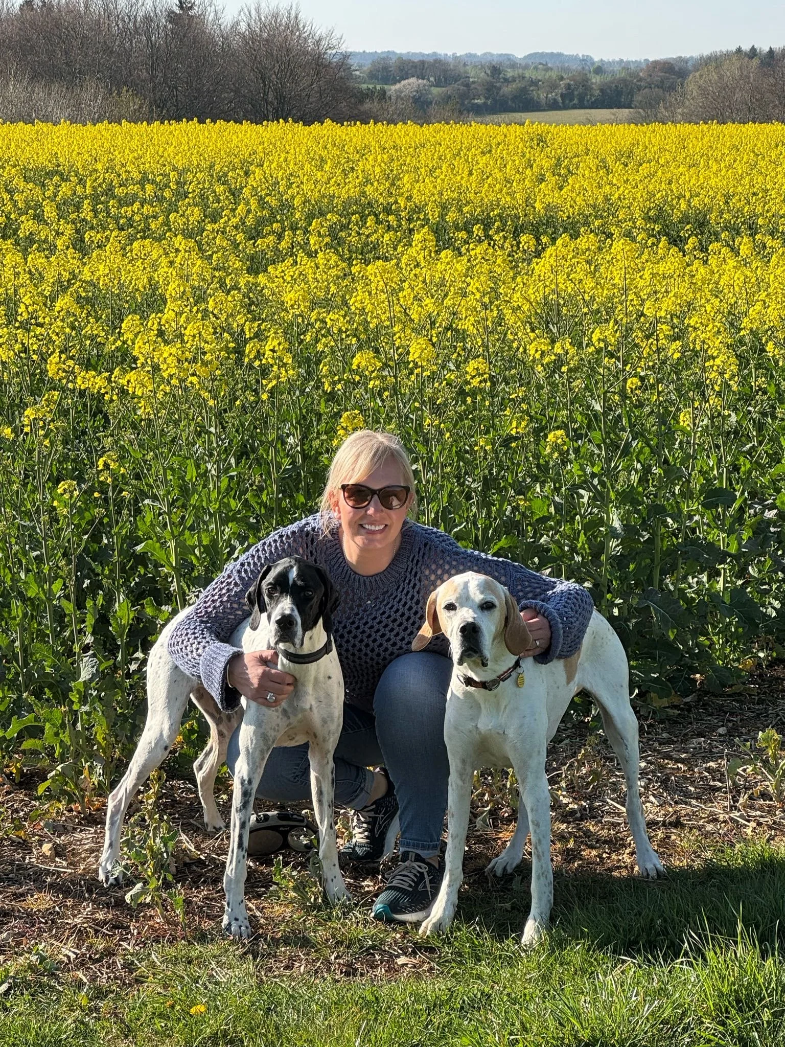 I live on the edge of the beautiful Cotswolds with my husband, and together we have two sons, aged 18 and 21, Our family is completed by our two English Pointers, who are quite possibly the loves of my life and certainly the most demanding.